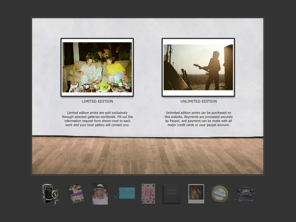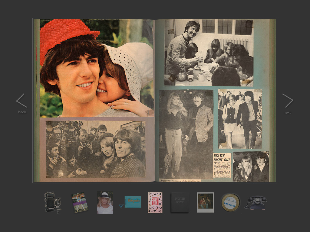 The site launch originally coincided with the release of Pattie’s autobiography. It’s a portfolio site with photo galleries, scrapbooks and video. These feature photos of Pattie’s life with husbands George Harrison and Eric Clapton as well as a fantastically 60’s ad Pattie starred in.